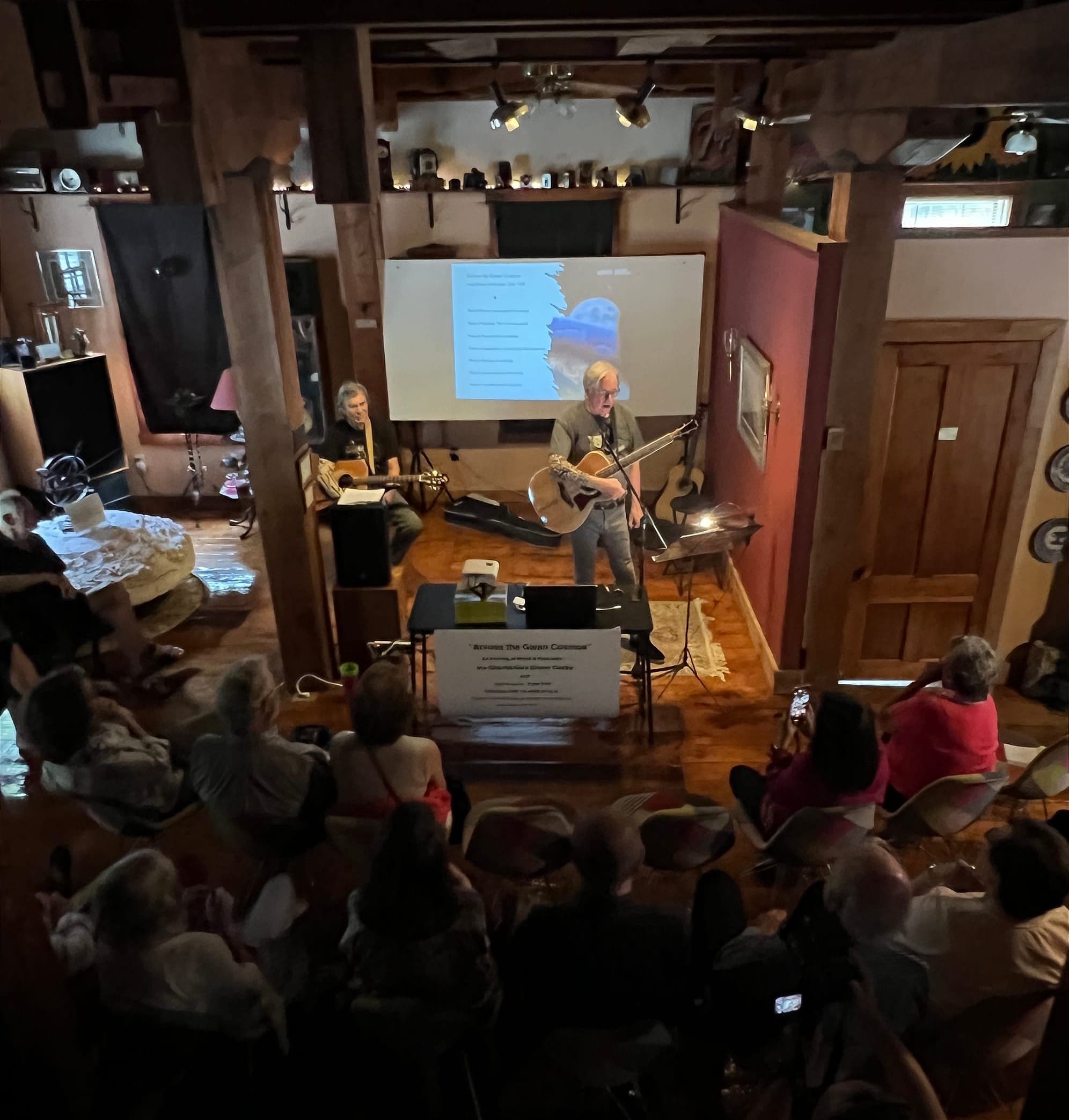 On July 19 of this year (2025), Tyler Volk (author of Gaia's Body) and I did a Gaia-themed concert, "Across the Gaian Cosmos," as a fundraiser for the Kingsley Grist Mill historical district in Clarendon, Vermont. Our venue was the Grist Mill itself, within its all-wooden high-ceilinged central space encircled with old radio sets and Ron Evans' paleolithic stereo system alongside the old millstone itself and other period components salvaged from the Mill's working life before its restoration. With Tyler on lead guitar and myself on rhythm guitar and vocals, we played a set of mostly old rockers with lyrics that resonated with seven choice phases of Gaia's unfolding.